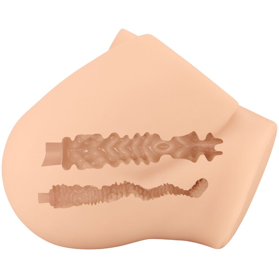 Saisissez, pressez, caressez et fessez ce masturbateur réaliste pour les fesses et le vagin. Ce sextoy à deux orifices ultra-serré offre une expérience intense et pleine de plaisir. Glissez-vous profondément dans l'anus serré et le vagin réaliste en explorant son tunnel à la texture complexe. De fines nervures et des bosses stimulantes entourent votre pénis tandis que vous vous masturbez. Son vagin serré et son anus rebondi n'attendent que d'être comblés, pour des nuits de satisfaction garantie.
