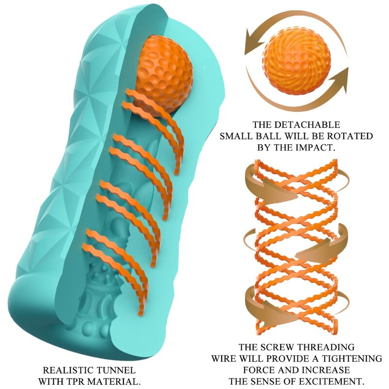 Petit outil pour un plaisir intense ! Ce masturbateur transparent et réutilisable est doté d'une spirale rotative et d'une bille de stimulation latérale. La spirale rotative anime le masturbateur pendant la pénétration, tandis que la bille stimule les zones érogènes pour des sensations inédites. L'intérieur de la gaine, à la texture stimulante et excitante, masse intensément et dynamiquement le pénis lors de la masturbation. Élégant et hypoallergénique, ce masturbateur est réutilisable à l'infini. Simple d'utilisation, il garantit un plaisir pur !